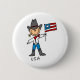 Cute stick figure cowboy dressed in patriotic USA red, white, and blue holds and waves the US flag on customisable USA buttons, cards, mugs, Tshirts, mousepads, and more!