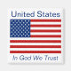 An authentic fine quality image of the flag of USA set between the state name and nickname over a flag-colour background.