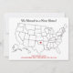 Share your new home address with loved ones with this design featuring the map of the United States. Move the red heart to the state you are living in and add your new address details at the bottom. Wording in the title can be changed as well as the background colour, font and font colour. If you need help moving the heart, please message me in my store. Click "customise further" in blue to move the red heart.
