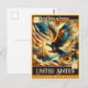 Experience the nostalgic charm of vintage United States with our captivating Vintage Postcard. This stunning illustration transports you back in time with its expressive brushstrokes and vibrant colour palette, reminiscent of classic paintings. Blending abstraction and realism, the subject's likeness emerges amidst a captivating tapestry of abstract forms, drawing you into a world of dynamic energy and intensity. With bold contrasts and dripping paint effects, this postcard exudes movement and spontaneity, inviting you to explore the depth and texture of the painting.