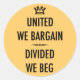"United We Bargain, Divided We Beg," wisdom in the wwII British "Carry On" poster style, on t-shirts, hoodies, buttons, stickers, cards, gifts.