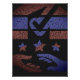 This dynamic circular design features colourful striped shapes and prominently displays a handshake at the bottom, symbolising partnership. In the centre, a ballot shape cleverly incorporates a check mark icon as negative space, representing civic engagement. Five stars are arranged in the middle, reinforcing a theme of unity and shared goals, creating a powerful message of connection and collective purpose.