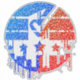 This design features a circular composition that incorporates vibrant, striped shapes. At the base, a cityscape silhouette provides context, while a central ballot shape, highlighted by a check mark formed through negative space, emphasises participation in the democratic process. Five stars are thoughtfully arranged in the middle, adding a sense of unity. The textured, fluid elements create a dynamic visual experience, reflecting the interplay of diverse perspectives.