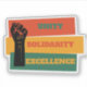 Celebrate Black History Month with this impactful square sticker featuring the words "Unity," "Solidarity," and "Excellence" in bold Pan-African colours. Complete with a raised fist graphic, this sticker is a symbol of strength, pride, and resilience. Perfect for decorating laptops, water bottles, notebooks, or as a thoughtful addition to event materials. Show your support for Black heritage and promote empowerment with this meaningful design.