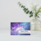 * Indigo Pink Purple White Stars describes this cosmic outer space celestial universe nebula celestial star background business card. There is a white with light lavender edge information box on the front. The back of the card matches the border of the front information box . The colour of text on the back is white. *