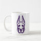This design is a close-up of the University at Albany Great Dane mascot head. The illustration uses bold purple outlines with detailed shading in grey for the Great Dane's face, highlighting its angular features. The eyes are sharp, and the expression conveys alertness and strength. Accents of gold appear on either side of the dog's jaw, adding a touch of warmth to the otherwise fierce look. The ears are upright and pointed, reinforcing the logo's sense of readiness and authority. The design is minimal yet powerful, ideal for branding UAlbany’s athletic identity.