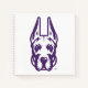This design is a close-up of the University at Albany Great Dane mascot head. The illustration uses bold purple outlines with detailed shading in grey for the Great Dane's face, highlighting its angular features. The eyes are sharp, and the expression conveys alertness and strength. Accents of gold appear on either side of the dog's jaw, adding a touch of warmth to the otherwise fierce look. The ears are upright and pointed, reinforcing the logo's sense of readiness and authority. The design is minimal yet powerful, ideal for branding UAlbany’s athletic identity.