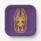 This design is a close-up of the University at Albany Great Dane mascot head. The illustration uses bold purple outlines with detailed shading in grey for the Great Dane's face, highlighting its angular features. The eyes are sharp, and the expression conveys alertness and strength. Accents of gold appear on either side of the dog's jaw, adding a touch of warmth to the otherwise fierce look. The ears are upright and pointed, reinforcing the logo's sense of readiness and authority. The design is minimal yet powerful, ideal for branding UAlbany’s athletic identity.