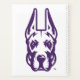 This design is a close-up of the University at Albany Great Dane mascot head. The illustration uses bold purple outlines with detailed shading in grey for the Great Dane's face, highlighting its angular features. The eyes are sharp, and the expression conveys alertness and strength. Accents of gold appear on either side of the dog's jaw, adding a touch of warmth to the otherwise fierce look. The ears are upright and pointed, reinforcing the logo's sense of readiness and authority. The design is minimal yet powerful, ideal for branding UAlbany’s athletic identity.
