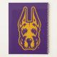 This design is a close-up of the University at Albany Great Dane mascot head. The illustration uses bold purple outlines with detailed shading in grey for the Great Dane's face, highlighting its angular features. The eyes are sharp, and the expression conveys alertness and strength. Accents of gold appear on either side of the dog's jaw, adding a touch of warmth to the otherwise fierce look. The ears are upright and pointed, reinforcing the logo's sense of readiness and authority. The design is minimal yet powerful, ideal for branding UAlbany’s athletic identity.