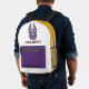 The University at Albany Great Dane mascot logo features a stylised depiction of a Great Dane's head. The dog is illustrated with sharp, bold lines in purple and grey, giving it a fierce, confident expression. The ears stand tall, symbolising alertness and strength. Underneath the Great Dane head is the word "UAlbany" written in bold, blocky golden letters outlined in purple, reinforcing the university's branding. This design represents UAlbany's sports teams, highlighting power, loyalty, and determination.