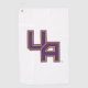 The The University at Albany initials logo features a bold and dynamic "UA" design, rendered in the university's signature purple and outlined with a striking gold border. The angular, block-like letters give the logo a strong and authoritative appearance, perfect for representing school pride and identity. The symmetrical and geometric structure of the letters conveys a modern and professional aesthetic.