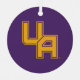 The The University at Albany initials logo features a bold and dynamic "UA" design, rendered in the university's signature purple and outlined with a striking gold border. The angular, block-like letters give the logo a strong and authoritative appearance, perfect for representing school pride and identity. The symmetrical and geometric structure of the letters conveys a modern and professional aesthetic.