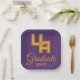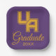 The The University at Albany initials logo features a bold and dynamic "UA" design, rendered in the university's signature purple and outlined with a striking gold border. The angular, block-like letters give the logo a strong and authoritative appearance, perfect for representing school pride and identity. The symmetrical and geometric structure of the letters conveys a modern and professional aesthetic.