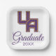 The The University at Albany initials logo features a bold and dynamic "UA" design, rendered in the university's signature purple and outlined with a striking gold border. The angular, block-like letters give the logo a strong and authoritative appearance, perfect for representing school pride and identity. The symmetrical and geometric structure of the letters conveys a modern and professional aesthetic.
