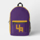 The The University at Albany initials logo features a bold and dynamic "UA" design, rendered in the university's signature purple and outlined with a striking gold border. The angular, block-like letters give the logo a strong and authoritative appearance, perfect for representing school pride and identity. The symmetrical and geometric structure of the letters conveys a modern and professional aesthetic.