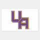 The The University at Albany initials logo features a bold and dynamic "UA" design, rendered in the university's signature purple and outlined with a striking gold border. The angular, block-like letters give the logo a strong and authoritative appearance, perfect for representing school pride and identity. The symmetrical and geometric structure of the letters conveys a modern and professional aesthetic.