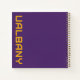 The University at Albany wordmark features bold, geometric typography in purple with gold outlines. The text is written in all capital letters, forming a strong and modern style that emphasises the university's identity. The angular lines and sharp edges of the font create a sense of power and professionalism. The gold outline adds a touch of prestige and visibility, making the wordmark stand out on both light and dark backgrounds. This design is perfect for branding athletic teams, merchandise, and university-related media.