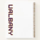 The University at Albany wordmark features bold, geometric typography in purple with gold outlines. The text is written in all capital letters, forming a strong and modern style that emphasises the university's identity. The angular lines and sharp edges of the font create a sense of power and professionalism. The gold outline adds a touch of prestige and visibility, making the wordmark stand out on both light and dark backgrounds. This design is perfect for branding athletic teams, merchandise, and university-related media.