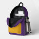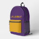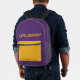 The University at Albany wordmark features bold, geometric typography in purple with gold outlines. The text is written in all capital letters, forming a strong and modern style that emphasises the university's identity. The angular lines and sharp edges of the font create a sense of power and professionalism. The gold outline adds a touch of prestige and visibility, making the wordmark stand out on both light and dark backgrounds. This design is perfect for branding athletic teams, merchandise, and university-related media.