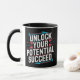 Unlock your potential succeed, black motivational mug