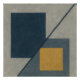 Sealed indigo square stands closed. Gray fragments circle; gold glimmers within. A diagonal line cuts tension—never resolving.