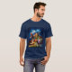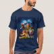 I give wanted to give this a 4 instead of a 5 because these Basic DARK T0shirts run unexpectedly SLIM or Narrow. Which is great if you do not have a potbelly, but I have a paunch. It isn't the shirt's fault that I've got a beer belly. The design and shirt itself is a quality cotton shirt. The color is more of a deep purple, but still a very pretty color. The Basic DARK T-shirts run a bit SLIMMER than the Basic Ts. The neck is a fraction narrower (or seems to be narrower) also. I'm a paunchy middle-aged woman and my neck is 12 inches (31cm) thick and the neckline fell about the same as in the photo of the man, and I had the desire to tug it a bit. So if you're a thick necked man or like loose shirts, be aware these are slimmer shirts. Once I get rid of my lockdown paunch it'll look great. The shirt washed well in cold water with no apparent bleeding. We don't have a dryer, so it hung dry. Did not shrink. Love the colors and the design. The design looks smaller on my shirt than it does on the model on-line. But still, it looks good on the shirt. The printing looks as it does on the model, just the size seems fractionally smaller. Washed garment in cold water, hung dry and design appeared unaffected.