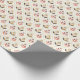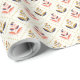 Unrolled and flat views of floral wrapping paper with a repeating pattern of pink and red roses on a beige background, creating a vintage, elegant feel.