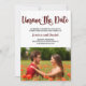 Add your own photo to these Unsave the Date cards to let guests know that your wedding has unfortunately been postponed. The template is set up ready for you to add your photo and to edit as much of the text as you wish. The design features hand lettering for the words "Unsave the Date" in burgundy and modern typography for your message. The back of the card is plain burgundy.