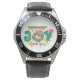 My husband loves the watch, he likes the dial, the graphics, the band, and it keeps perfect time.