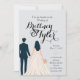 The Brittney Arched Double Sided Wedding Invitation is fully customizable. Part of the Until Forever Collection, this elegant invitation features a custom illustration graphic of a wedding couple styled to resemble you and your partner. You can choose the paper, the fonts, the colors, and the wording for your invitation. We will design for you a custom couple graphic, monogram, and a wedding icon(custom graphic) that you can use across your entire wedding stationery suite. This invitation features a timeless design and just enough frills in the font to be romantic and elegant. Without a lot of extra flowers or accents this invitation makes a statement that your event is going to be classic, formal, and sophisticated.