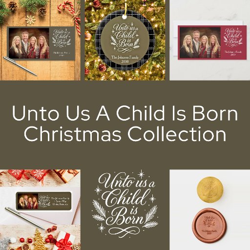 Unto Us A Child Is Born Square Photo Christmas Holiday Card