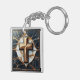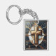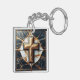 Unveiled Black and White Marble Cross With Gold Key Ring