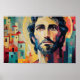 This expressive artwork captures the moment of Jesus’ rejection in Nazareth, reflecting the message of Mark 6:1–6. His gentle gaze, surrounded by abstract buildings, reminds us that even the Lord was not accepted by all. A moving piece for reflection and faith.