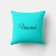 Modern and trendy aqua with swirls design throw pillow. Black script typography 'unwind' on both sides.