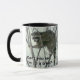 White and black 11 oz. combo mug with an image, on both sides, of a racoon in a tree and optional text.