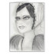 Black and white pencil sketch of a flapper with short hair and a cap hat