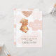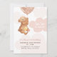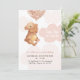 Up, Up & Away Teddy Bear Pink Clouds Baby Birthday Invitation