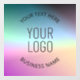 Your own logo and customisable text on colourful background.