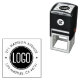 Black and white self-inking stamp featuring your logo, and business address. ----------ADVICE: When changing the logo to your own, be sure to use a solid black and white image for best results. If you do not have a black and white image click the customise button and add a new image, this will allow you to convert your logo to black and white. If you have any difficulties please contact me and I will do my best to help you!