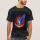 I give wanted to give this a 4 instead of a 5 because these Basic DARK T0shirts run unexpectedly SLIM or Narrow. Which is great if you do not have a potbelly, but I have a paunch. It isn't the shirt's fault that I've got a beer belly. The design and shirt itself is a quality cotton shirt. The color is more of a deep purple, but still a very pretty color. The Basic DARK T-shirts run a bit SLIMMER than the Basic Ts. The neck is a fraction narrower (or seems to be narrower) also. I'm a paunchy middle-aged woman and my neck is 12 inches (31cm) thick and the neckline fell about the same as in the photo of the man, and I had the desire to tug it a bit. So if you're a thick necked man or like loose shirts, be aware these are slimmer shirts. Once I get rid of my lockdown paunch it'll look great. The shirt washed well in cold water with no apparent bleeding. We don't have a dryer, so it hung dry. Did not shrink. Love the colors and the design. The design looks smaller on my shirt than it does on the model on-line. But still, it looks good on the shirt. The printing looks as it does on the model, just the size seems fractionally smaller. Washed garment in cold water, hung dry and design appeared unaffected.