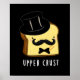 Upper Crust Funny Bread Pun features a cute slice of bread looking uppity with top hat, bow tie and moustache. Perfect pun gift for family and friends who love cute bread puns.