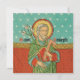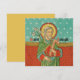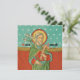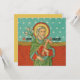 In this detail of a 19th-century Belgian devotional print, a mature, grey-haired St. Joseph stands in front of a red wall hanging with golden yellow trim. The tapestry is patterned with equal-armed crosses enclosed in rotated squares. How it is hung defies logical explanation because the background consists of an infinitely deep aqua-blue sky bespattered with stars. + St. Joseph is richly garbed in strong colours. His robe is red; his mantle, green with a dark aqua lining and golden yellow borders. He holds a spray of white lilies symbolising purity in his right hand and an L-shaped brown wooden carpenter’s rule indicative of his profession in his left. Beneath St. Joseph’s sandaled feet in the full-length image that appears, for example, on our greeting cards and posters in this COLLECTION are additional attributes--a small dragon, a crown, a scroll, and a globe inscribed with the names of the populated continents—that speak to his role as protector of The Church. + This chromo- or colour lithograph was originally published to promulgate Pope Leo XIII’s “Prayer to St. Joseph” of 1889. + Principal Feast of St. Joseph: March 19; Feast of St. Joseph the Worker: May 1 + Image Credit (VVP 09): Detail from an antique chromolithograph of Saint Joseph, Protector of the Church, Pray For Us [H. Jozef, beschermer der H. Kerk, B.V.O.] originally published by K[arel] v[an] d[er] Vyvere-Petyt, Bruges, Belgium, c. 1890, from the designer’s private collection of religious ephemera.