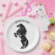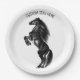 Paper Plates with Upright Black Wild Horse - Black and White Drawing Animal Art Mustang Horses by MIGNED - Add Your Unique Text / Choose your favourite colours - Resize and move or remove elements with customisation tool ! You can also transfer my designs to more than 1000 Zazzle products.