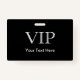Classy VIP visitor, guest, or event badges in black with cool silver coloured VIP text created as a graphic along with additional text you can customise online. Created for a company, corporate, or special events or night clubs.