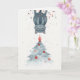 A whimsical Christmas card illustrated in the soft, nostalgic Tradition Treasures style. It features a mischievous blue-grey kitten hanging upside down in a string of festive lights, right above a beautifully decorated winter tree. The gentle watercolour textures and cool winter tones give the card a magical snowy feeling. Perfect for cat lovers and anyone who enjoys a fun and heartwarming Christmas design.