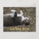 This postcard says, "Get Well Soon!" It shows a photograph of a grey-striped cat named Big Boy. Big Boy is stretched out on his back with his little white paws in the air waiting for a tummy rub. His irresistible face, green eyes, white chest, and freckled nose all add to make this an irresistible postcard for everyone.