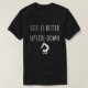 I give wanted to give this a 4 instead of a 5 because these Basic DARK T0shirts run unexpectedly SLIM or Narrow. Which is great if you do not have a potbelly, but I have a paunch. It isn't the shirt's fault that I've got a beer belly. The design and shirt itself is a quality cotton shirt. The color is more of a deep purple, but still a very pretty color. The Basic DARK T-shirts run a bit SLIMMER than the Basic Ts. The neck is a fraction narrower (or seems to be narrower) also. I'm a paunchy middle-aged woman and my neck is 12 inches (31cm) thick and the neckline fell about the same as in the photo of the man, and I had the desire to tug it a bit. So if you're a thick necked man or like loose shirts, be aware these are slimmer shirts. Once I get rid of my lockdown paunch it'll look great. The shirt washed well in cold water with no apparent bleeding. We don't have a dryer, so it hung dry. Did not shrink. Love the colors and the design. The design looks smaller on my shirt than it does on the model on-line. But still, it looks good on the shirt. The printing looks as it does on the model, just the size seems fractionally smaller. Washed garment in cold water, hung dry and design appeared unaffected.
