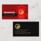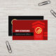 A dark red cover features a vertical red arrowhead shooting upwards to success. Two sets of intercepting lines, one black and the other red accentuate the arrow. To your left is your prestigious name and job title. Sitting inside the arrow is a gold global logo you can use with your business name at the base of the card.