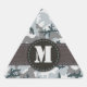 Triangle sticker with military urban camouflage seamless pattern background and monogram.